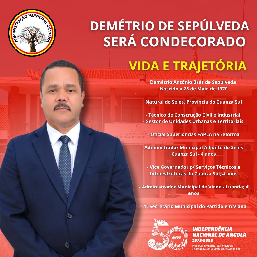 O Administrador Municipal de Viana, Demétrio António Brás de Sepúlveda, foi distinguido pelo Presidente da República, João Manuel Gonçalves Lourenço, com a Medalha da Classe de Paz e Desenvolvimento. A condecoração reconhece o trabalho realizado ao nível da governação local, com destaque para a promoção da paz social, coesão comunitária e impulsionamento do desenvolvimento sustentável […]